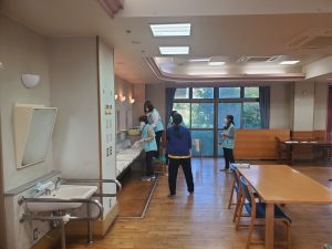 10月10日(金)14名の五十嵐民協様が来園し、1階と2階の食堂の集中清掃を行ってくださいました。